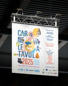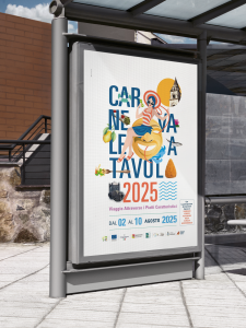 Il progetto ha incluso anche lo sviluppo della mascotte ufficiale “Lavica”, simbolo invernale del Carnevale, che per l’edizione estiva si è trasformata in “Ionica”, reinterpretando in chiave stagionale l’identità visiva dell’evento.